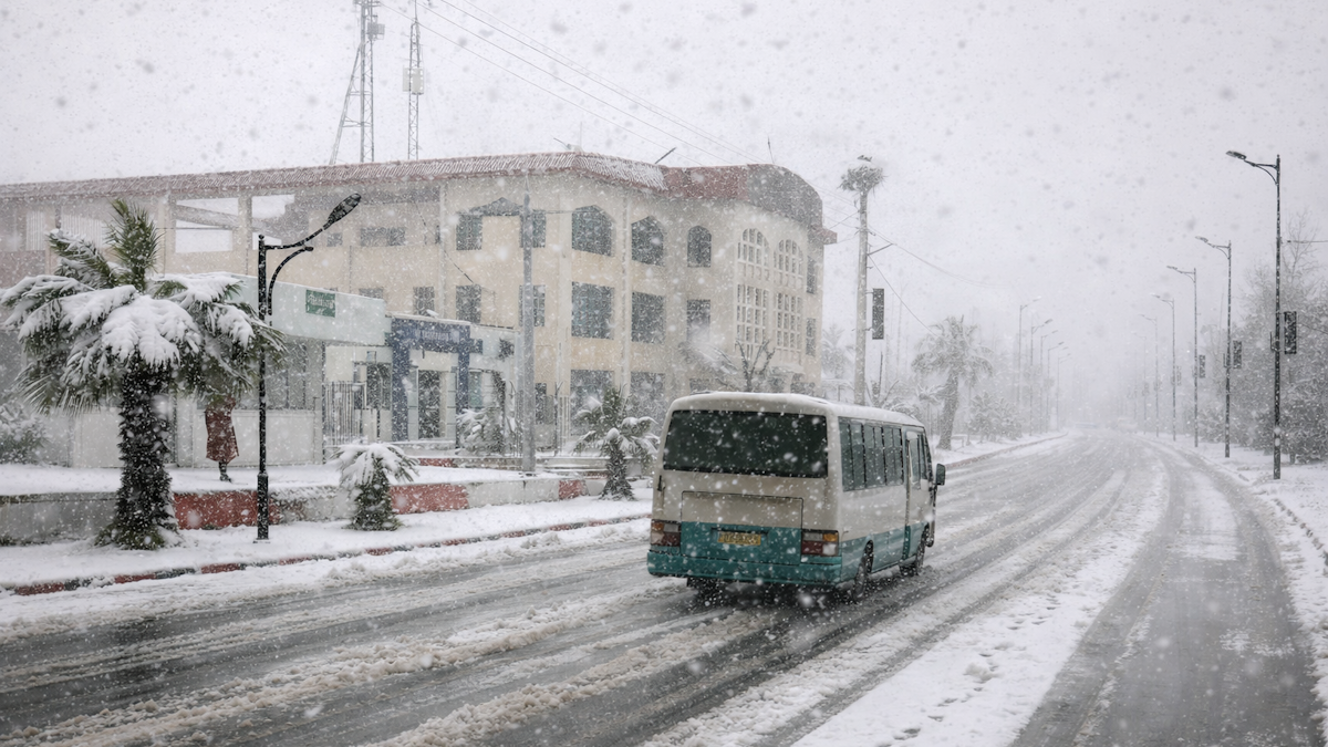 Sous l’influence d’un flux de nord piloté par la dépression méditerranéenne, le Maghreb connaît des températures très fraîches ces derniers jours. Elles permettent à la neige de s’inviter parfois jusqu’en basse montagne. L’Atlas a été particulièrement concerné avec des conditions de circulation parfois très difficiles ce jeudi 1er avril 2026. La photo ci-dessous a été prise à Souk Ahras dans le nord-est de l’Algérie à une altitude de seulement 700 mètres ! Il est peu commun d’observer de la neige à basse altitude en Algérie si tard dans la saison. Un peu plus haut, il est fréquemment tombé entre 10 et 20 cm !