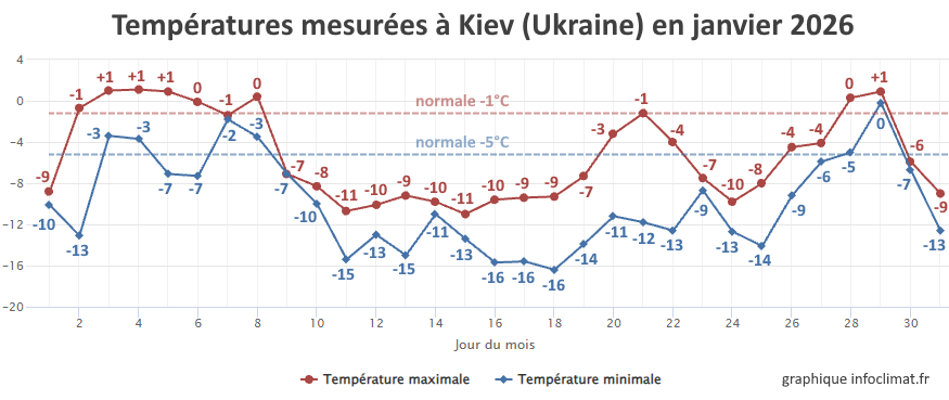 Températures minimales et maximales mesurées à Kiev (Ukraine) au mois de janvier 2026 – infoclimat.fr
