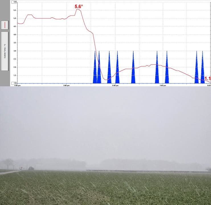 La giboulée neigeuse qui s’est produite entre 16 et 17h a abattu la température. Une faible gelée est modélisée pour la fin de nuit, les sols étant mouillés il faudra âtre vigilant au lever du jour😉