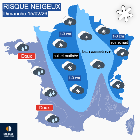 Risque de neige pour le dimanche 15 février 2026 – Météo Villes