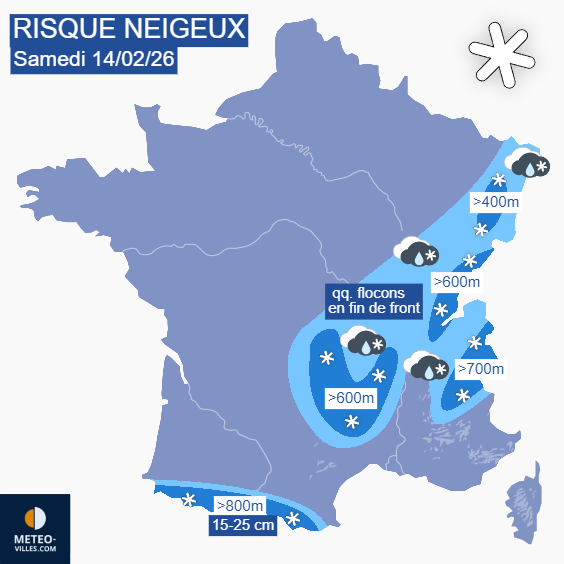 Risque de neige pour le samedi 14 février 2026 – Météo Villes