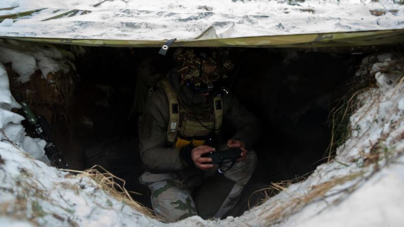 Les moyens de camouflage employés reposent avant tout sur l’adaptation à l’environnement. Les personnels, les véhicules et les postes de combat sont intégrés au terrain en tenant compte des spécificités locales, mêlant zones enneigées, espaces marécageux et zones boisées. Les tenues, les armes et les équipements sont ajustés en conséquence, combinant différentes teintes pour rompre les silhouettes et éviter toute détection visuelle. Les postes de combat suivent la même logique d’intégration, tandis que les véhicules bénéficient de dispositifs visuels spécifiques, incluant bâches adaptées, matériaux isolants, et utilisation de la neige pour limiter la signature thermique.