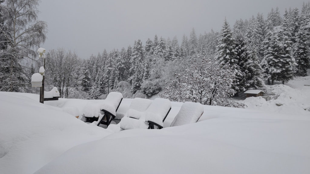 15-20 cm dès 1600 mètres (sols parfois blanchis dès 1100m) sont tombés sur une large moitié Ouest de la région la nuit dernière, et localement 25-30 cm au-dessus de 2000 mètres dans les Aravis, tandis que l’on relève seulement 5 à 10 cm au-dessus de 1700 mètres sur le Sud-Est de la Savoie.