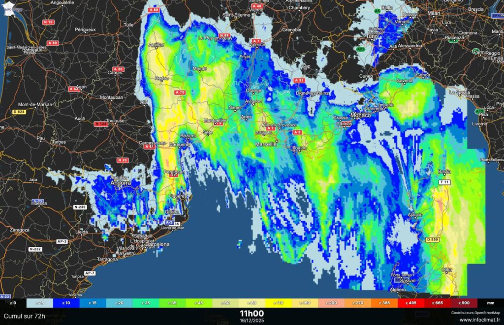 🌧️ L’épisode méditerranéen se poursuit ce mardi 16 décembre :