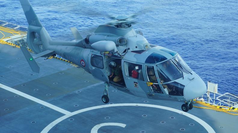 Contacté par le CROSS Réunion pour porter secours à un marin à bord du navire URANUS 1, l’équipage d’alerte a décollé du porte-hélicoptère amphibie Dixmude avec à son bord un médecin.