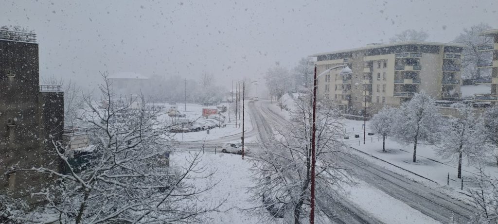 La neige a remplacé la pluie en cours de matinée, avec des cumuls atteignant localement jusqu’à 10 cm autour de Rodez dans l’Aveyron (12)