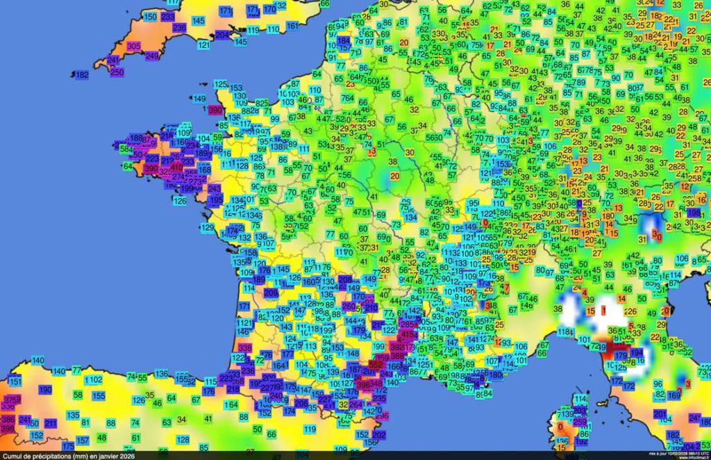 Des valeurs exceptionnelles qui illustrent bien l’intensité de cet épisode pluvieux 🌧️ carte des cumuls pour janvier