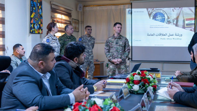 Dans le cadre de son engagement au sein de la mission de l’OTAN en Irak (NMI, NATO Mission Iraq), la France, à travers l’envoi de conseillers militaires, participe au renforcement et à l’autonomie des institutions irakiennes. Dans la volonté d’accompagner la construction de capacités modernes, la Division de la formation et du développement (TDD) et le bureau communication de la Mission de l’OTAN en Irak ont organisé un atelier collaboratif avec des instructeurs irakiens de l’École des médias.