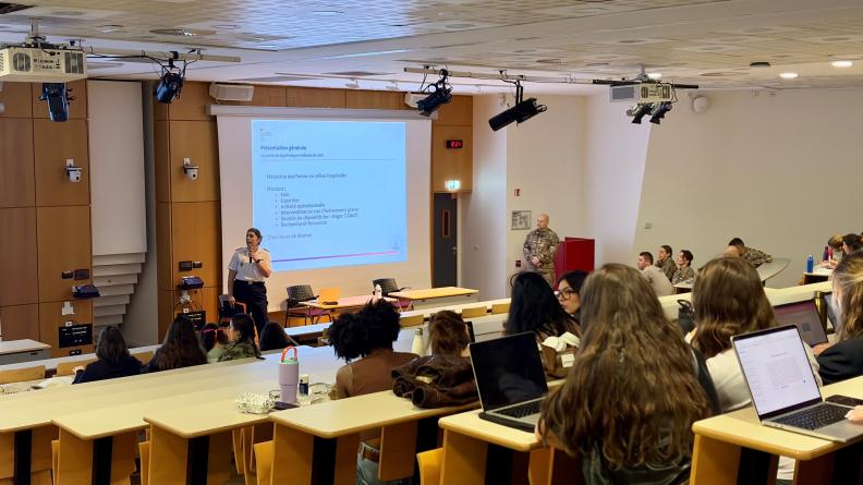 Pour aller plus loin, une conférence dédiée aux étudiants en psychologie leur a permis d’explorer les enjeux de la prise en charge des blessés de guerre. Syndromes post-traumatiques, accompagnement psychologique, résilience face aux traumatismes liés au combat : des échanges concrets pour se préparer aux réalités du terrain.