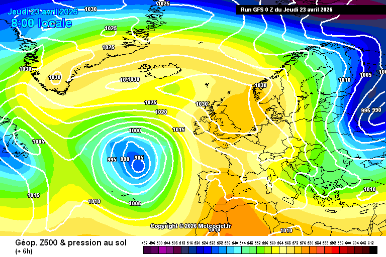 Animation des géopotentiels sur l’Europe du 23 avril au 1er mai 2026 – Modèle GFS via meteociel