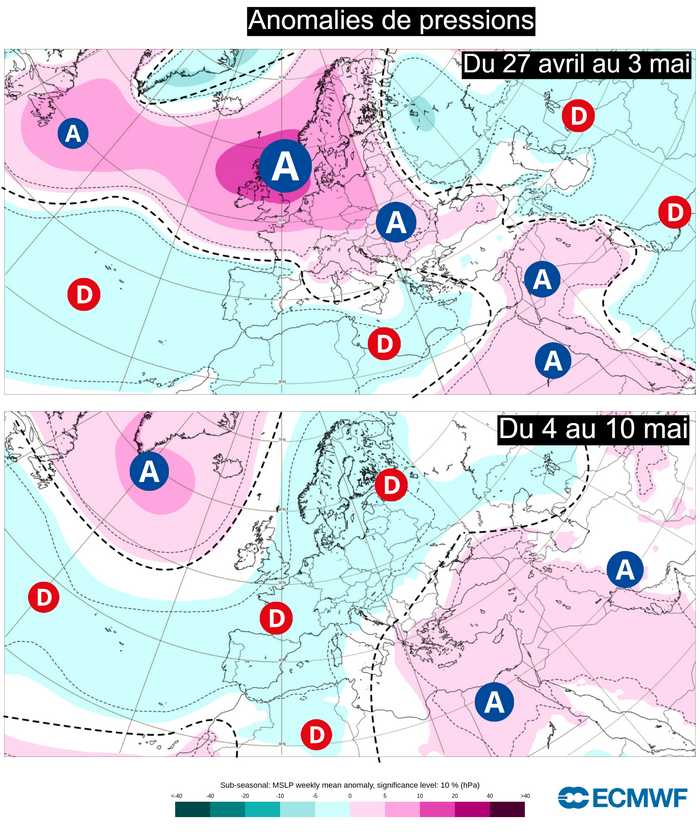 Anomalies de pression pour la période du 27 avril au 11 mai 2026 – ECMWF