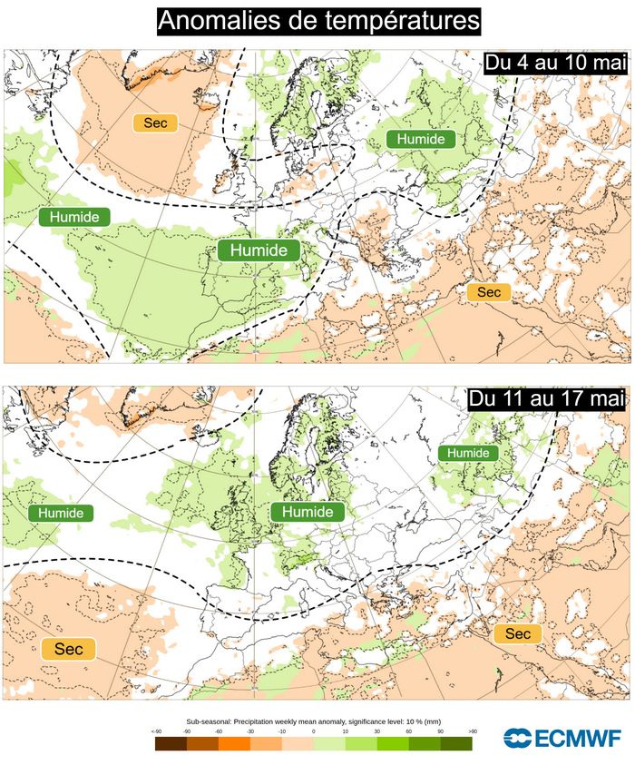 Si ces prévisions resteront bien sûr à confirmer d’ici là, cette tendance plus humide et perturbée pour le début du mois de mai semble se maintenir depuis plusieurs semaines, ce qui corrobore d’ailleurs avec les modèles saisonniers qui envisageaient un mois de mai instable et humide sur la majorité du pays.