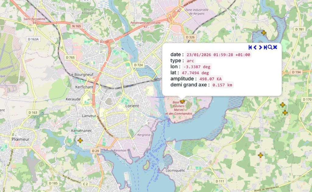 Puissant Impact positif ⚡️ mesuré à 498kA la nuit dernière à Lorient !