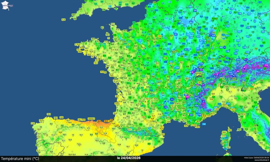 Plus de 25°C d’écart au lever du jour, entre le Nord Est et le Sud Ouest.