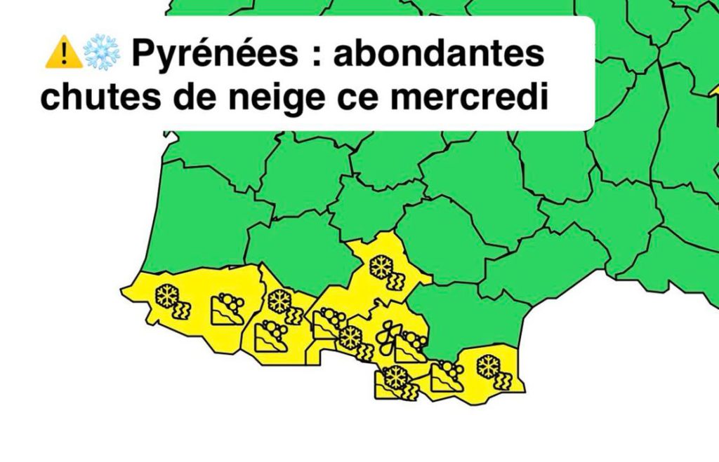 ❄️ Jusqu’à 1 m de neige attendu ce mercredi sur les Pyrénées, notamment en Ariège.