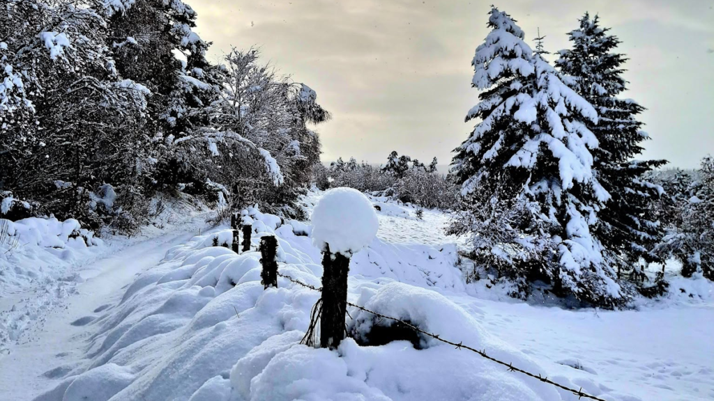 Neige abondante à Villeneuve (48) à 1200m le mercredi 3 décembre 2025 – photos Sandra Barbuda via Météo Languedoc