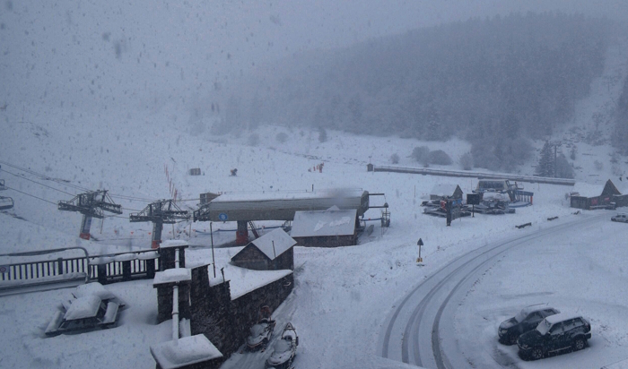 Neige forte à Barèges (65) à 1450m ce matin du jeudi 4 décembre 2025 – webcam skaping