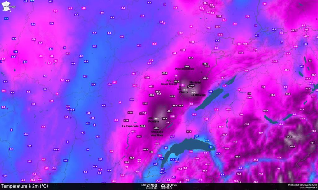 Il est 22h30, il fait déjà jusqu’à -25°C sur le haut Doubs !