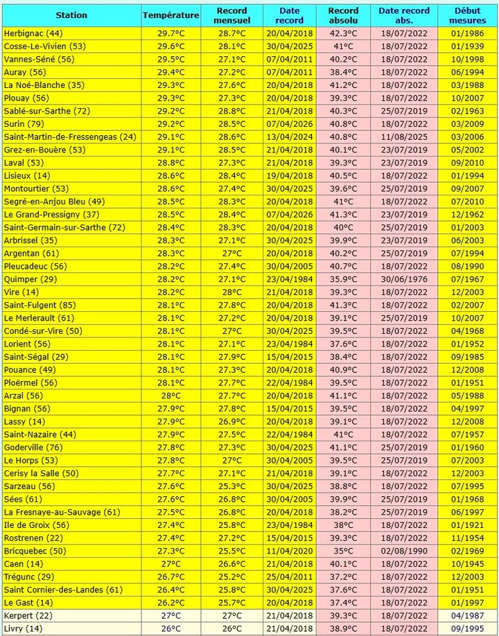 28.2°C à #Quimper (ancien 27.1° en 1984)