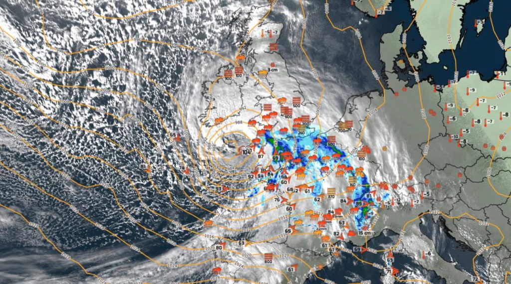 16H : #Goretti prend forme sur l’image satellite. 980 HPA
