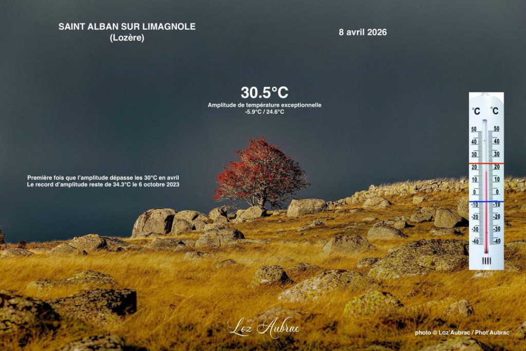 Amplitude remarquable hier sur notre réseau StatIC Infoclimat de l’ #aubrac