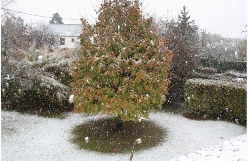 Cette neige lourde provoque d’importants dégâts sur des arbres qui n’ont pas encore perdu leurs feuilles.