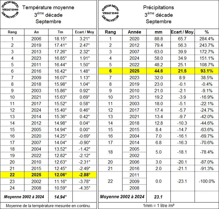 Bilan de cette dernière décade de septembre : plus fraîche que la normale et abondamment arrosée.