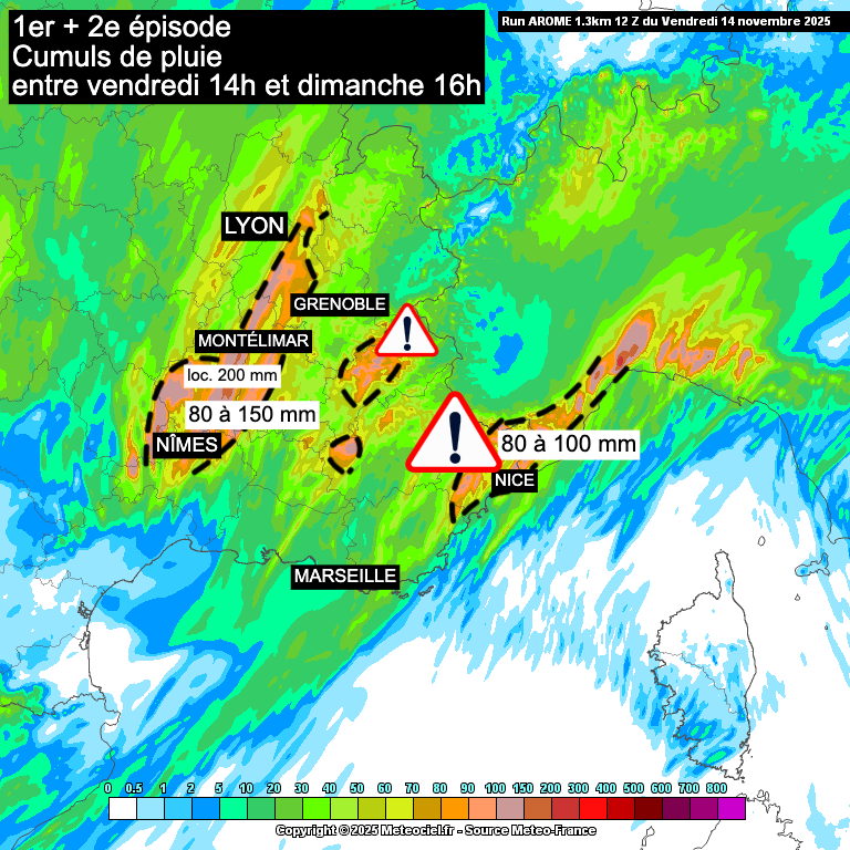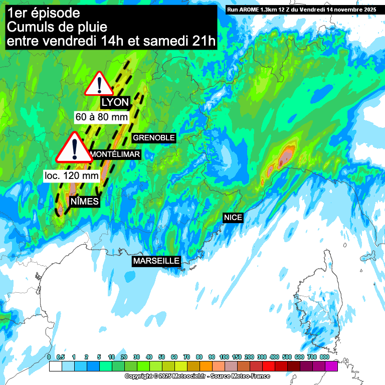 on 14 novembre 2025 at 9:50 PM Alerte météo aux pluies intenses : le point sur l’épisode cévenol et Méditerranéen de ce week-end