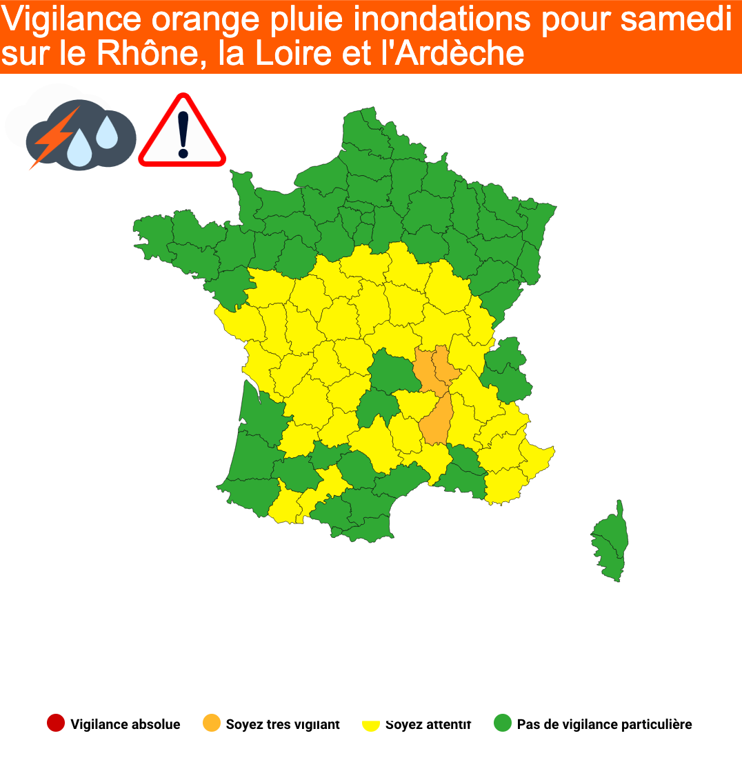 Une première vigilance orange pour le Rhône, la Loire et l’Ardèche