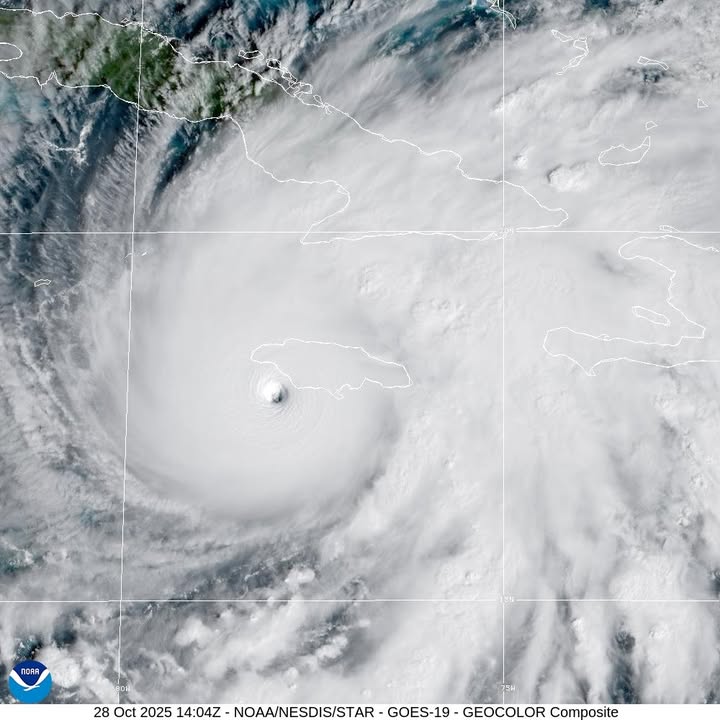 on 28 octobre 2025 at 3:33 PM Dernier bulletin pour‼️ Ouragan majeur Melissa ‼️ 🌀 892 hPa ➡️ 3ème pression la plus basse jamais enregistrée 🌬 jusqu’à 300 km/h ➡️ 2e vents les plus forts jamais enregistrés Le mur de l’oeil va toucher la Jamaïque 🇯🇲 d’ici moins d’1h Pensée pour les jamaicains 🇯🇲Photos de la publication de Infoclimat