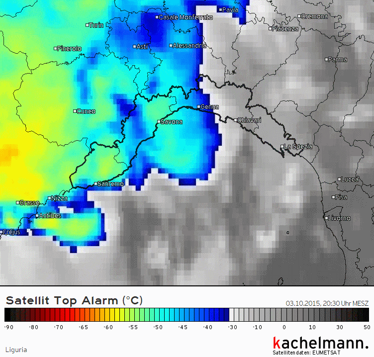 Animation satellite sur le sud-est de la France entre 20h et 22h le 3 octobre 2015 – Via keraunos.org