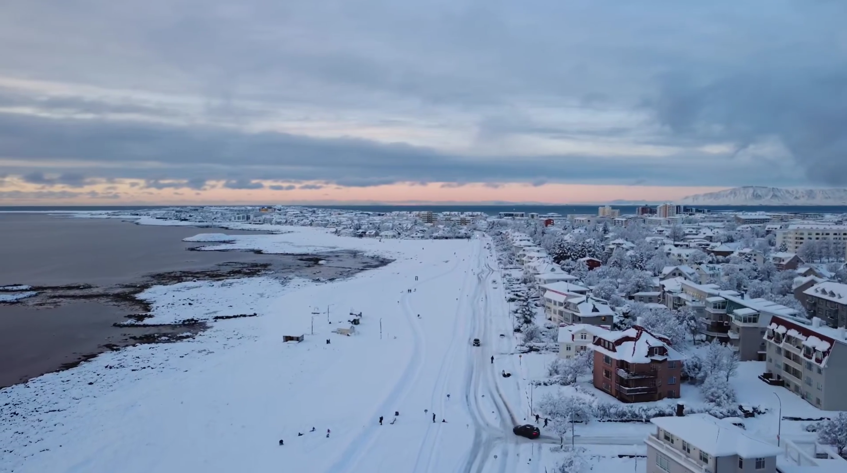 Au lendemain de la tempête de neige, les paysages étaient superbes ce mercredi 29 octobre 2025, comme le montre la vue aérienne ci-dessous. Un épais manteau blanc a recouvert la capitale islandaise, à l’image des tempêtes de neige survenant en plein cœur de la saison hivernale. D’ailleurs, la neige fond très peu puisqu’un froid d’hiver s’est installé. Ce mercredi, la température maximale à Reykjavik ne fut que de +0,2°C.
