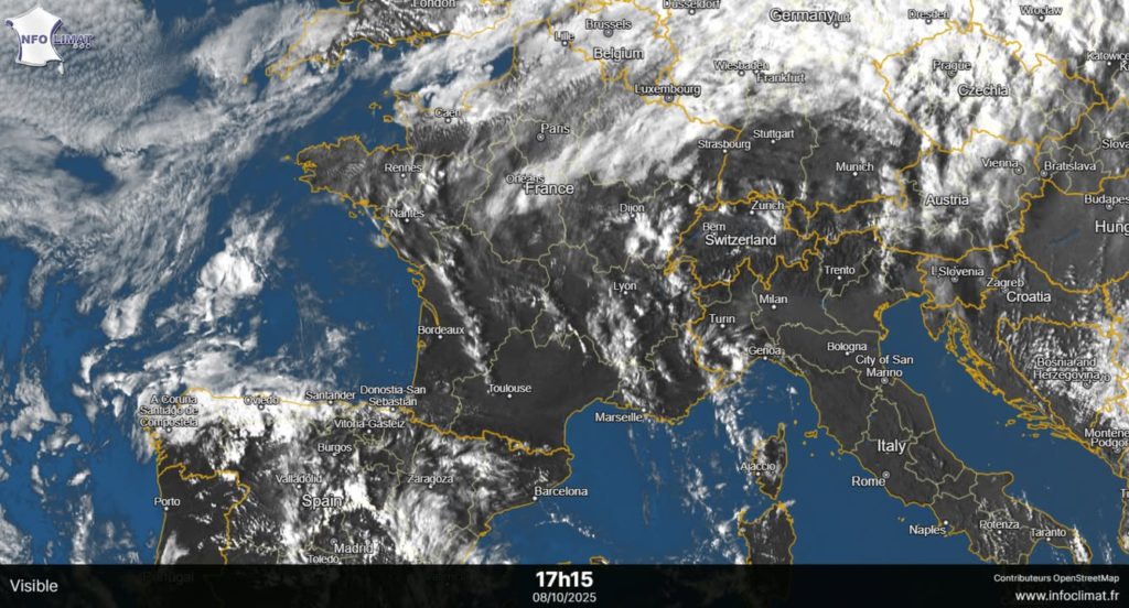 🌞Une belle journée d’octobre à l’échelle de la France, avec souvent du soleil, sauf d’Orléans à Nancy et de Caen à Lille, où la nébulosité est plus importante. Les 25°C sont parfois dépassés dans le Sud, avec par exemple :